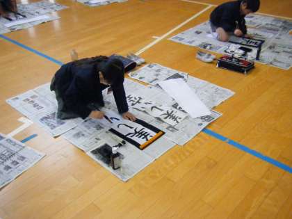 書き慣れない姿勢でしたが、心を落ち着け、みんな集中して、一字一字丁寧に書くことができました。