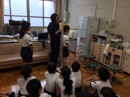 養護教諭から風邪等の感染予防についての講話があり、「風邪などのうつる病気の原因の1つにウイルスがあること」「ウイルスは肌からではなく、鼻や口から体の中へ入っていくこと」「予防には手洗い・うがいが重要であること」「体調が少し悪い時にはウイルスを広げないためのエチケットとしてマスクを着用すること」といったことを学びました。
