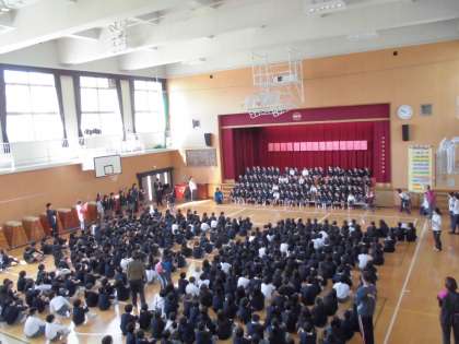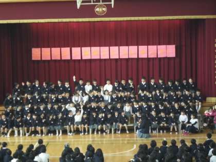 学校の生活についての紹介や、ゲーム、2〜5年生から校歌のプレゼントなどをおこないました。