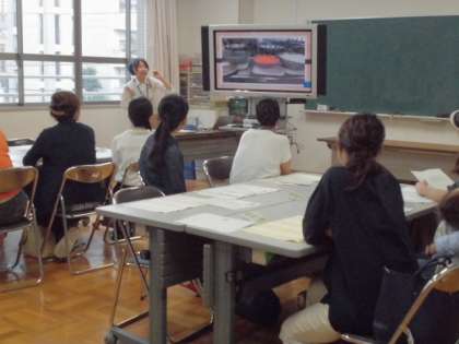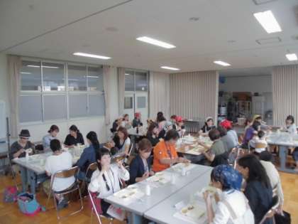 約30人の保護者の方に来ていただき、栄養教諭から給食についての話をさせていただき、その後、みなさんで一緒に給食をいただきました。