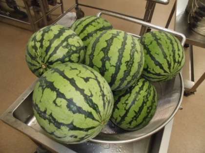 すいかは調理員さんが1玉を64人分に切り分けててくださいます。