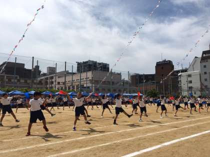 扇町小学校で初めてダンスでメガホンを持って踊りました。ダンス後半にはメガホンを使い声を合わせることができました。最後にはグループに分かれて、自分たちが考えたダンスを披露して退場しました。