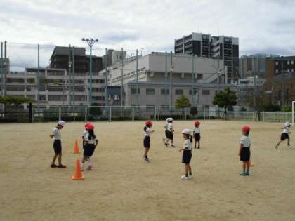 1組は「ころがしドッジボール」の様子です。1回目の学習なのでまだまだぎこちないですが、これからどのようにすればあてられるか考えながら学習を進めていきます。