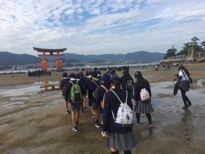 砂浜を歩き、大鳥居を間近に見ることができました!