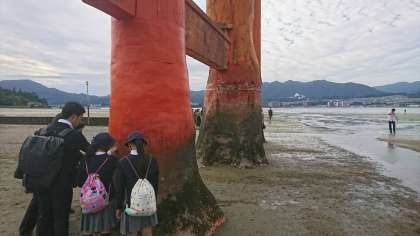 到着したときは海に浸かっていた大鳥居が、干潮で陸続きに!!