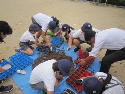 10月3日(火)「ミツバチが暮らすみんなで育てる花いっぱいまちづくりプロジェクト2017」の取り組みで、栽培委員会では500株のパンジーの苗を植えました。
