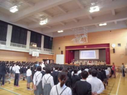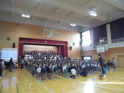 全校合唱で歌う3曲と退場のしかたを練習しました。