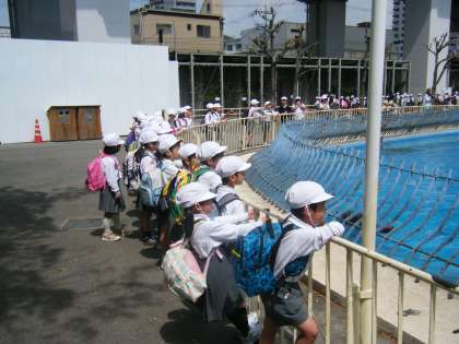 1日、春の遠足で1・2年生(約140名)が天王寺公園に行きました。