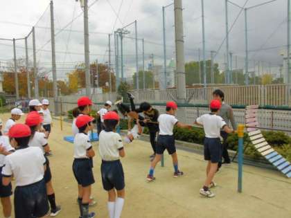 20日(月)にゲストティーチャーの方に鉄棒を教えていただきました。はじめは、逆上がりを不安がっていた子も、コツを教えていただくと自分からどんどん取り組むようになり、成功したときには大喜びしていました。