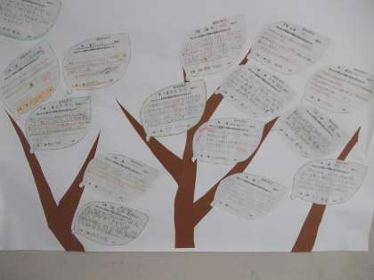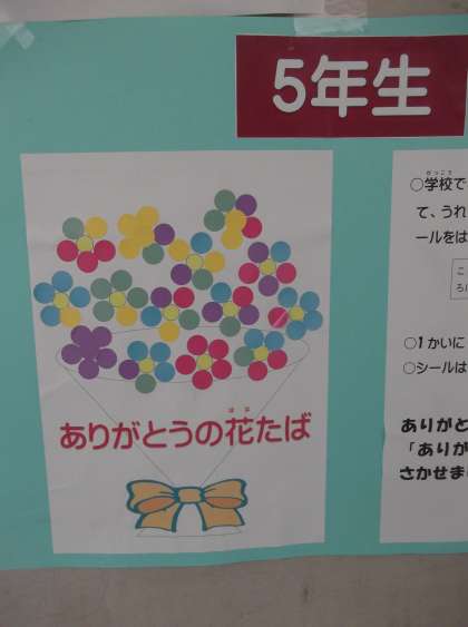 扇町小学校では、学期に1回ありがとう週間があります。お友達に感謝の気持ちをカードに書いて送ります。2学期は、そのカードでありがとうの木を育てていったり、ありがとうと言われて嬉しかったときにシールを貼って花束を作ったりしました。心が和む1週間でした。