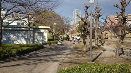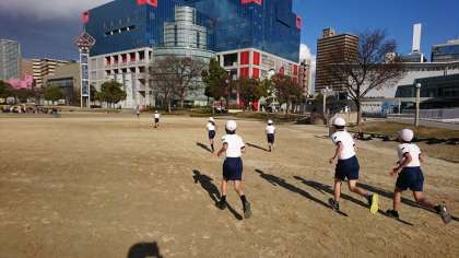 昨年度まで行われていた駅伝大会からマラソン大会に変わります。5年生が扇町公園に練習に行きました。5・6年生は5周走ります。
