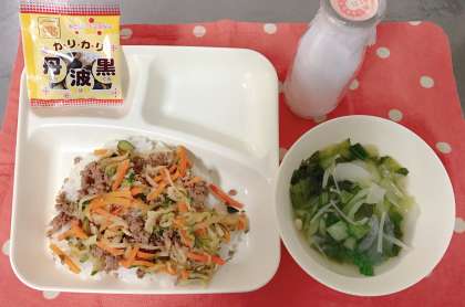今日のこんだて【ビビンバ、トック、いり黒豆、牛乳】
