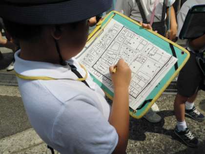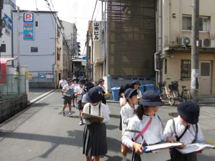 4つのグループに分かれて、扇町小学校の校区を探検しました。