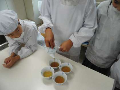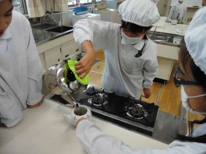 5年生から始まった家庭科では、お茶の入れ方の実習を通して、家庭科室の使い方を学習しました。