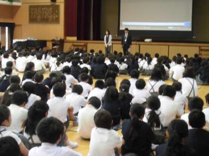 校長先生からは、扇町小学校のみなさんが笑顔で過ごしていくためには、「相手の立場に立って考えること、お互いのことを分かり合おうとすること、思いやりや優しい気持ちを持って人と接すること、人としっかりと話し合うことが大切」だということをお話くださいました。