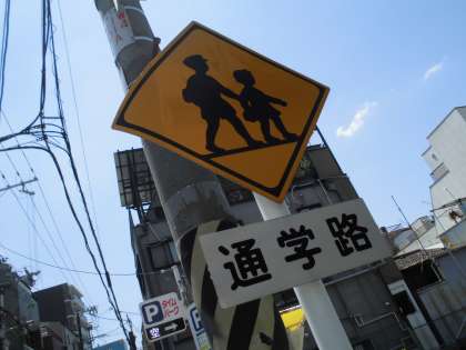 道路標識や横断歩道、こども110番の家などを見つけながら歩きました。