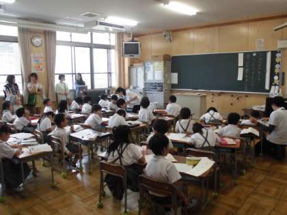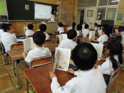 1年生は、国語科の「あひるのあくび」と音楽科の「はくをかんじてリズムをうとう」の学習をしました。