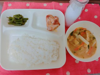 「みそ汁」は、うすあげ、じゃがいも、キャベツ、たまねぎ、にんじん、にだいこん葉を使用しています。