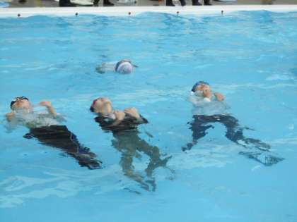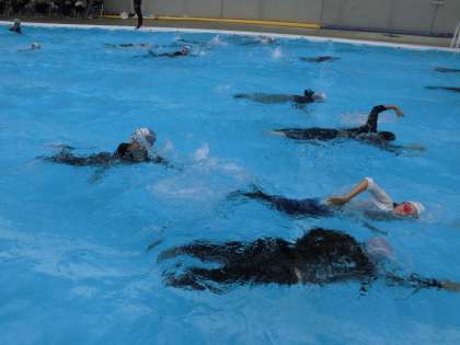 普段は泳ぎの得意な子どもも、服を着たら思い通りに浮いたり泳いだりできなくて、あたふたしている様子でした。
