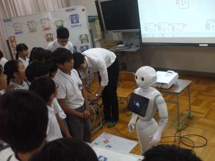 ロボットを動かすために、セリフや動きなどのプログラムを自分たちで考えました。