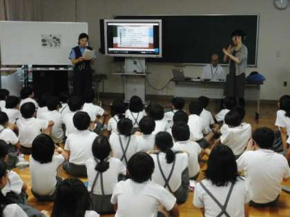 今日は曽根崎警察署の方に来ていただき、6年生を対象に非行防止教室を開きました。