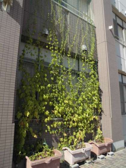そんな暑さをやわらげるべく、緑のカーテンがすくすくと育っています!!
