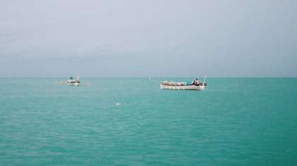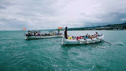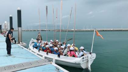 はじめは息が合わなかったり、櫂がぶつかったりして思うようように進みません。