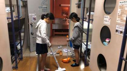 自分たちが使った部屋、お風呂、トイレを掃除します。