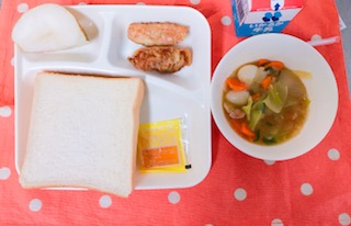 これに、旬のくだものの「なし(豊水)」を1人1/4切れずつ組み合わせています。