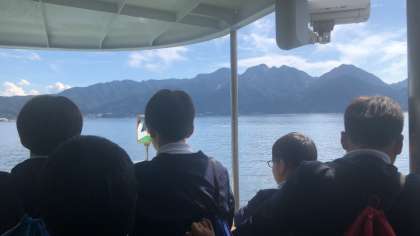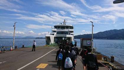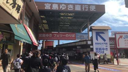 6年生を乗せたバスは予定より少し早く宮島口に着きました。