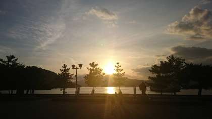 綺麗な夕焼けを見ながら、フェリーで宮島を後にします。