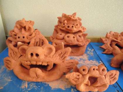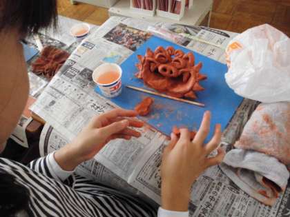 図画工作科で沖縄の守り神「シーサー」を作りました。