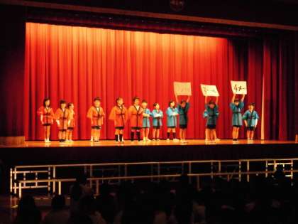 劇の中には、生活科で学習した生き物についてのクイズを出題したり、最後には手話をつけて歌を披露したりしました。