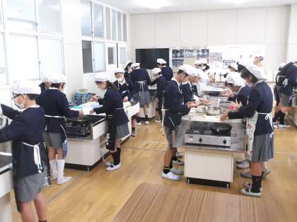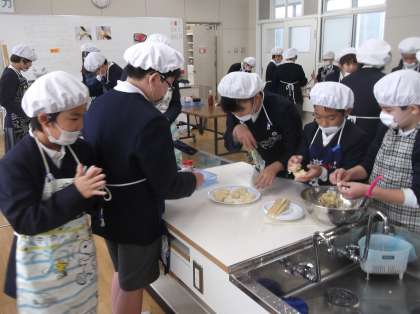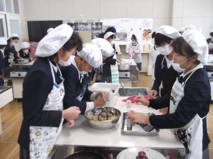 家庭科の学習で、調理実習を行いました。メニューは、身近な食材「じゃがいも」を使った料理、「ツナポテトハンバーグ」です。