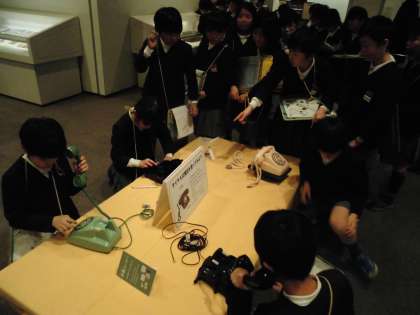 今昔館の方から昔の道具についての説明やクイズがありました。初めて見る黒電話に、使い方が分からずなかなかかかりませんでした。その後、昔の街にタイムスリップした気分で、建具屋さんやお風呂屋さんなどの展示室を見学しました。