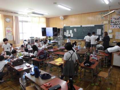 今日の5時間目は、友だちグループに分かれてフリーフェスティバルの準備を行いました。
