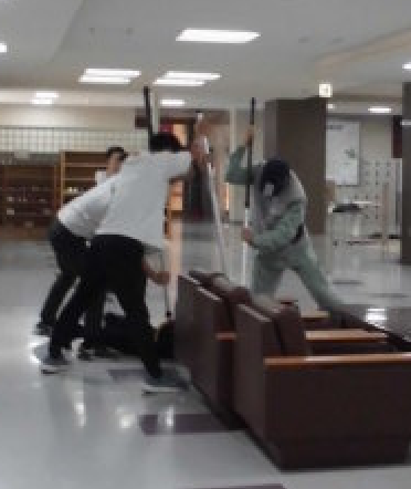 休み時間、自由に過ごしている時に緊急放送がかかり、避難訓練を開始しました。