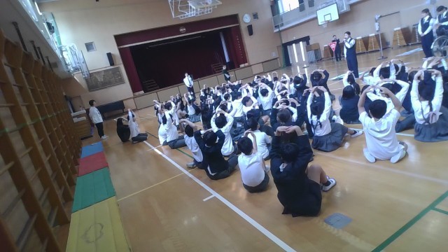 3,4年生はクイズをしたり、自転車の乗り方についてのお話を聞いたりしました。