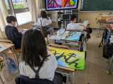 図工の学習では、自分の名前をひらがなや漢字でデザインし、線の形を工夫して名前の道...