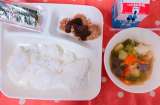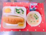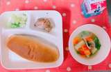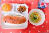 今日のこんだて【コッペパン、あんずジャム、コーンクリームシチュー[米粉、キャベツ...