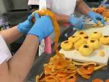今日は給食に柿が登場しました。 給食室には128個の平種無柿が納品され、調理員さ...