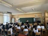 原爆の悲惨さや怖さについていろいろ考えています。みんな真剣な顔つきです。