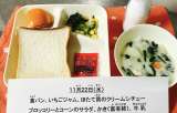 今日のこんだて【米飯、豚肉とまいたけのいためもの、つみれ汁、ういろう、牛乳】 「...