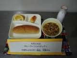 今日のこんだて 【らいむぎパン、牛乳、カレースープスパゲッティ、かぼちゃのバター...