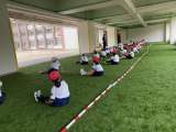 今日は雨で運動場が使用できないので、新しくできた東校舎1階にあるピロティを使用し...