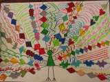 図画工作科の学習で、「おしゃれなくじゃく」を描きました。 くじゃくの羽を、型...