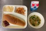 【こくとうパン、カレードリア、豚肉とキャベツのスープ、りんご(缶)、牛乳】 今...