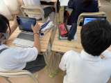 図工の学習で、細長く切った画用紙を使ってかごを作っています。 紙を交互に組むこと...