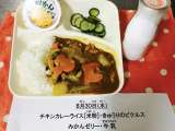 今日のこんだて【チキンカレーライス(米粉)・牛乳・きゅうりのピクルス・みかんゼリ...