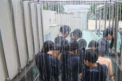 体操をして、シャワーをしっかりと浴びて、安全のためのバディを組みます。